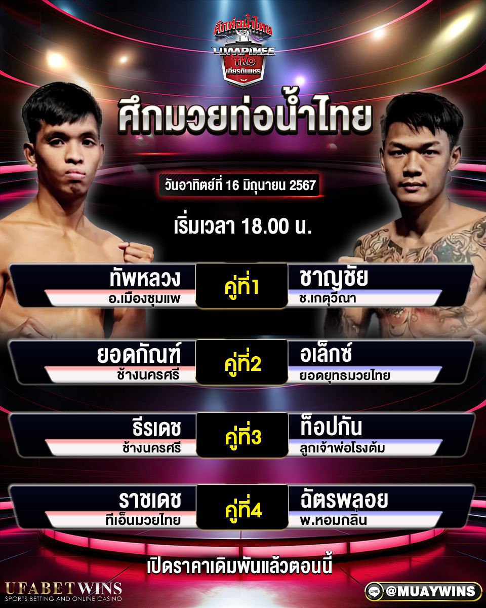 โปรแกรมการแข่งขัน ศึกท่อน้ำไทย เกียรติเพชร วันอาทิตย์ที่ 16 มิถุนายน 2567