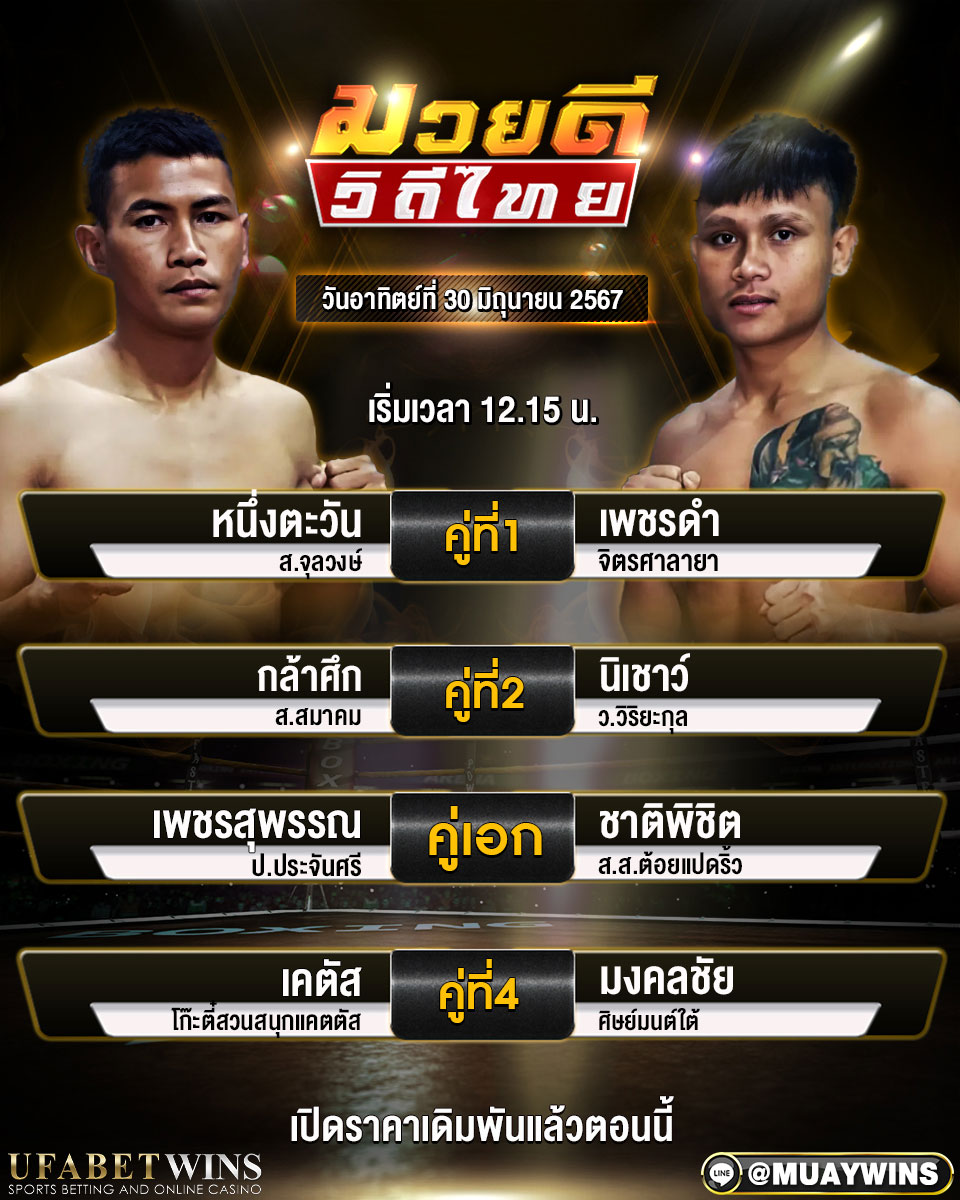 โปรแกรมการแข่งขัน ศึกมวยดีวิถีไทย วันอาทิตย์ที่ 30 มิถุนายน 2567