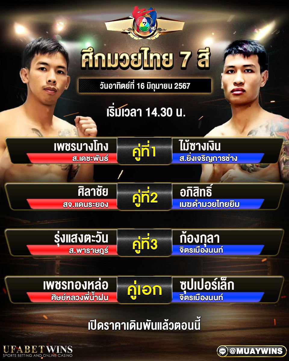 โปรแกรมการแข่งขัน ศึกมวยไทย 7 สี วันอาทิตย์ที่ 16 มิถุนายน 2567