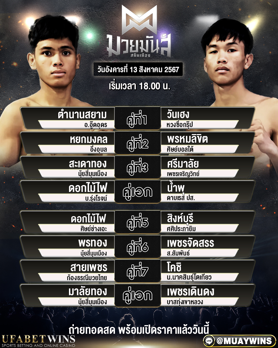 โปรแกรม ศึกมวยมันส์สนั่นเมือง วันอังคารที่ 13 สิงหาคม 2567
